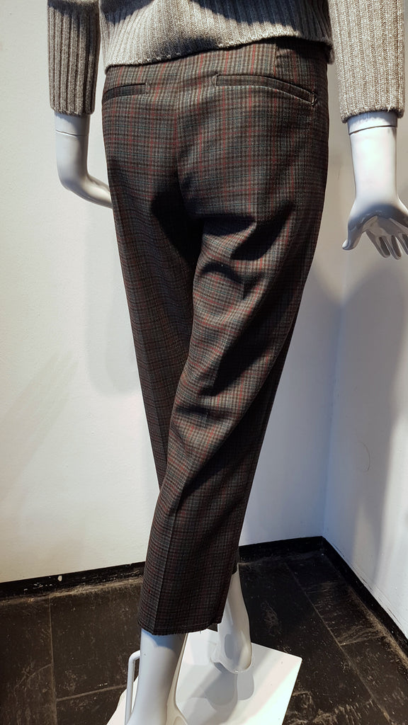 Verkürzte lässige Hose mit kleinem Karo-Muster (anthrazit-rot-petrol) (-63%)